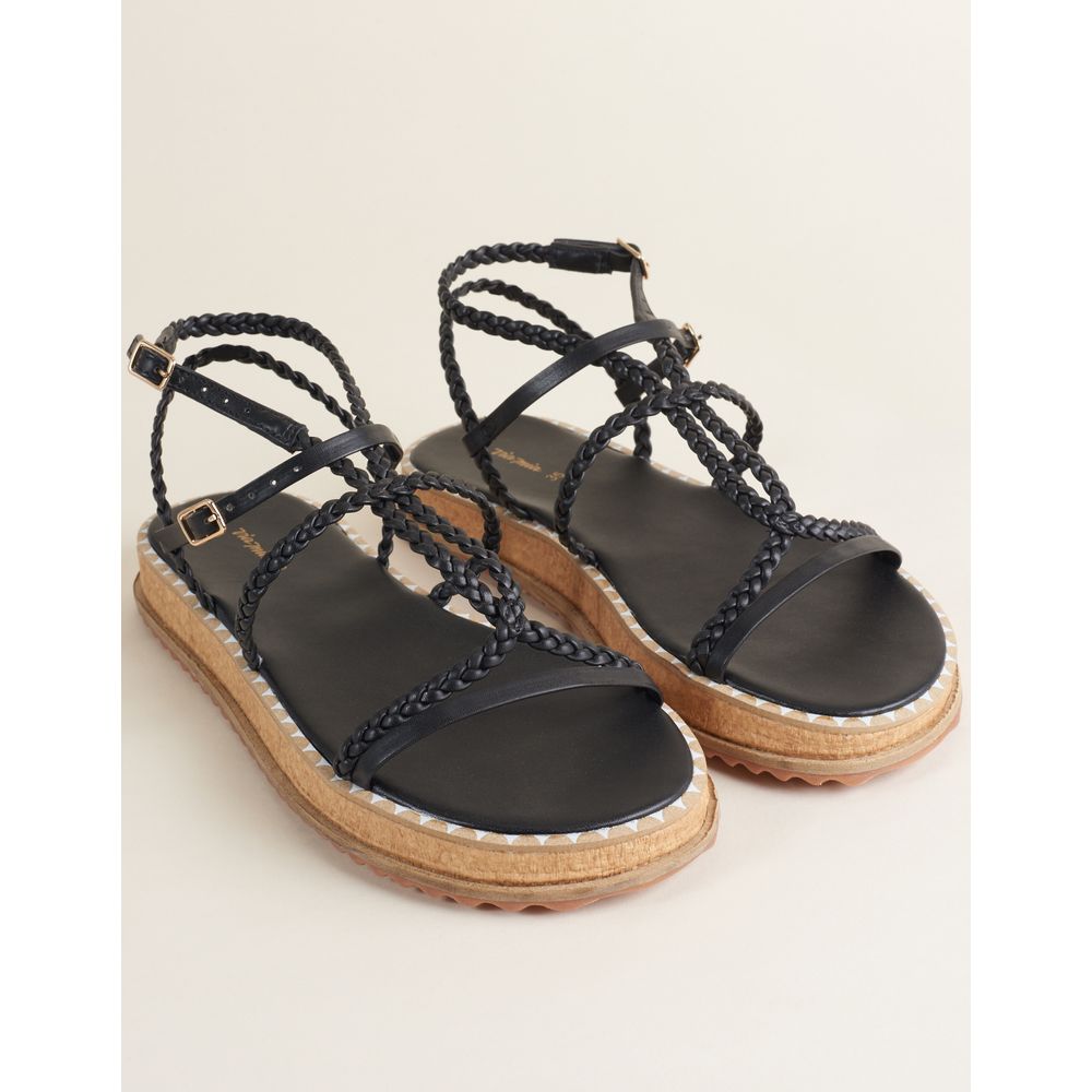 Flatform com tiras e tranças em soft e salto em palha. Salto: 3cm Rústica e elegante, dá charme extra ao look.