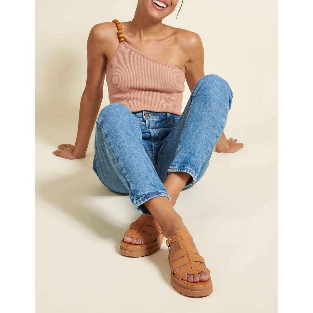 PapeteSandália esportiva com solado de EVA ou corda com salto de aproximadamente 2 cm de altura. Na Via Mia, essa construção está incluída na linha de Rasteira Fashion.