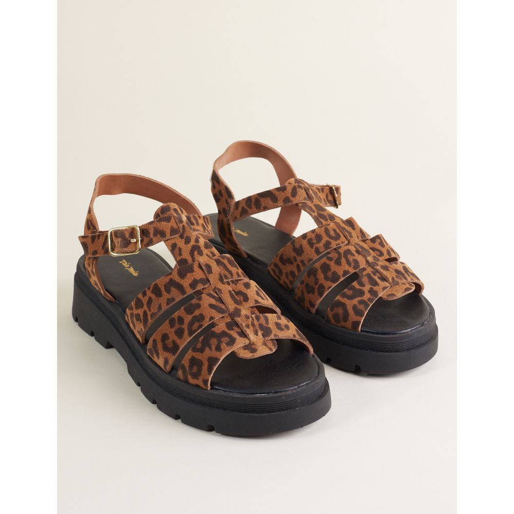 Flatform Em Couro Com Estampa De Onça - Onca