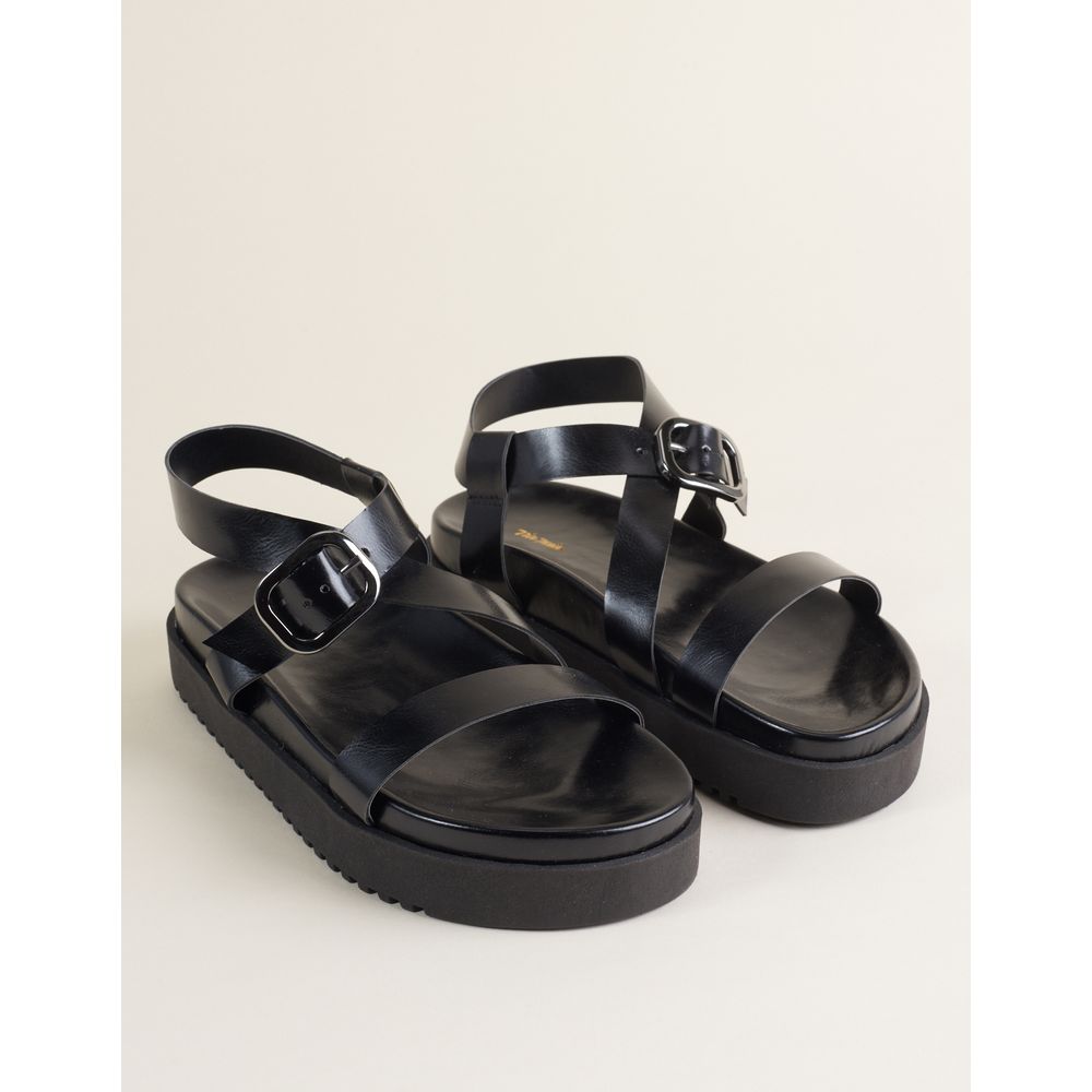 Plataforma estilo flatform confeccionada em material soft encerado, com design moderno e versátil. Possui palmilha anatômica que garante mais conforto no uso e solado tratorado que adiciona estabilidade ao caminhar. O detalhe de fivela em resina traz um toque contemporâneo ao modelo. Altura do solado: 3,5 cm.