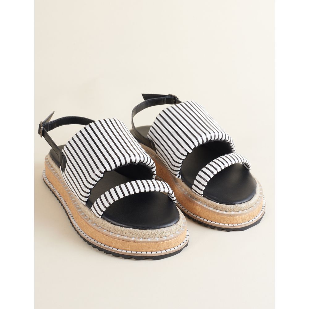 Super estilosa, essa flatform com cabedal em material soft, alternativo ao couro, com listras é um arraso! A palmilha e a tira de fechamento na cor da listra com fivela trazem harmonia ao visual. O solado com detalhe de juta, viras, ráfia, e EVA completa essa peça cheia de personalidade.