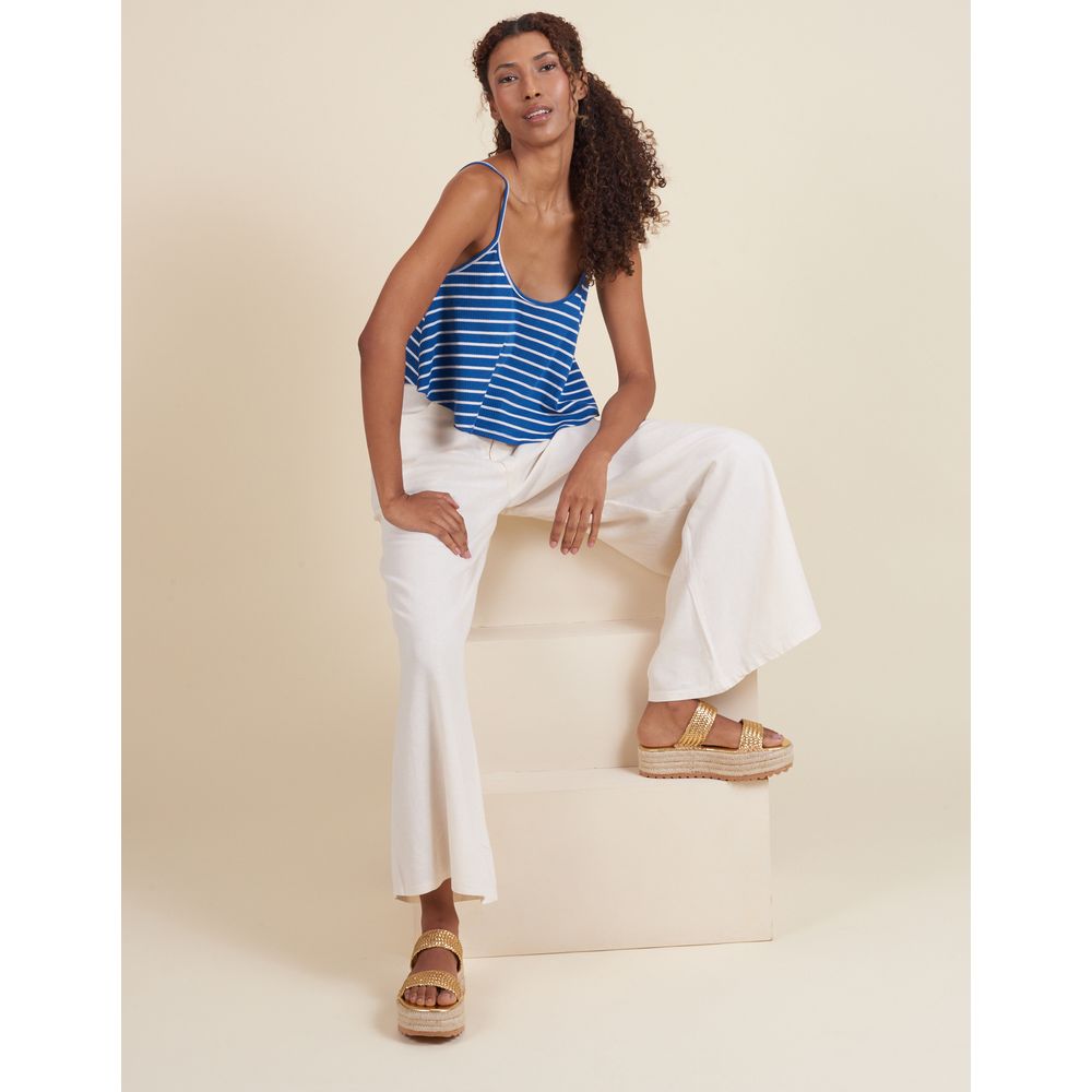 Glamour e estilo em uma só peça! Essa flatform tem cabedal com tiras largas de tressê em material soft, alternativo ao couro metalizado, palmilha macia, e cepa forrada de corda com pesponto seleiro. O solado natural dá o toque final.