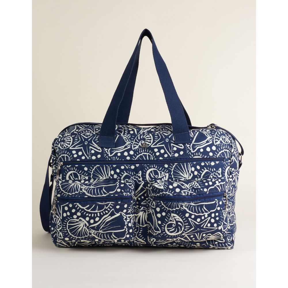 Mala em tecido estampa MAR exclusiva Via Mia. Possui bolso frontal com zíper e alça tiracolo de cadarço regulável. Medidas: 29cm (A) x 47cm (L) x 20cm (P). Estampada e prática, ótima para viagens curtas.