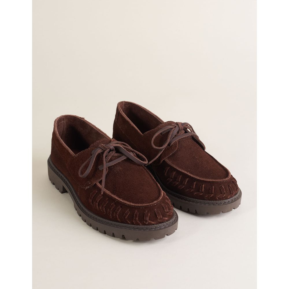 Mocassim em couro camurça com detalhe trançado na frente. Solado tratorado em borracha. Clássico e confortável, ideal para looks casuais.