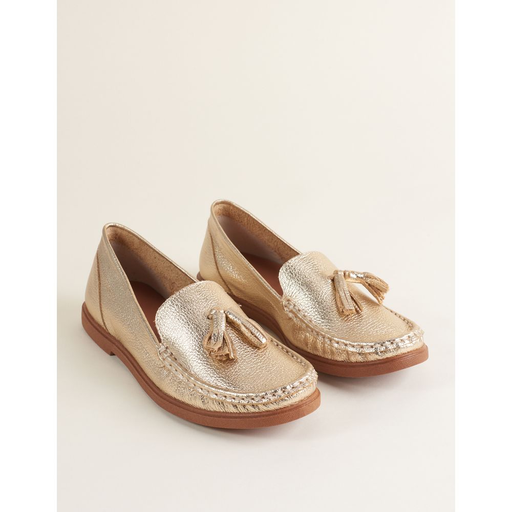 Mocassim Em Couro Metalizado E Barbicacho - Ouro Light