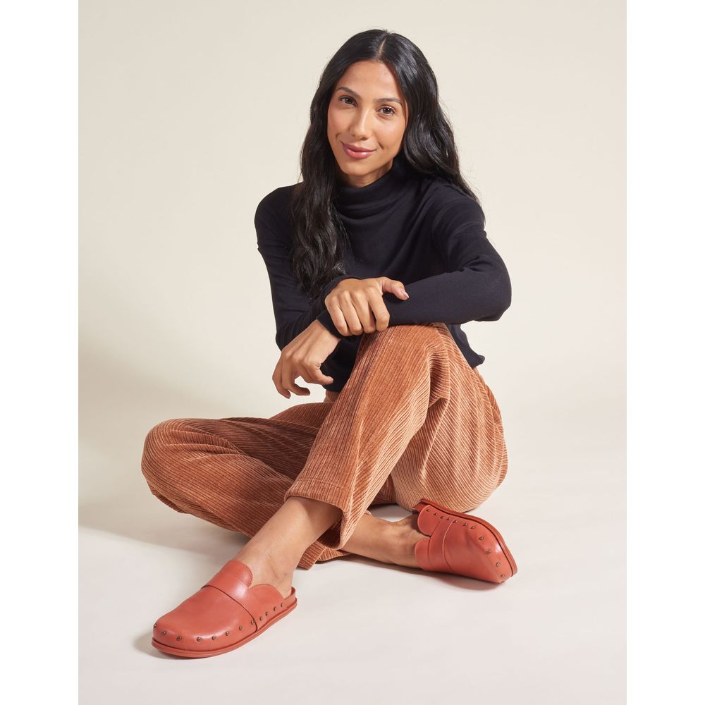 Mocassim mule em couro encerado com detalhe de gravata e rebites. Com palmilha anatômica e muito conforto. Pode apostar: as clogs são tendência na estação de Inverno 25!