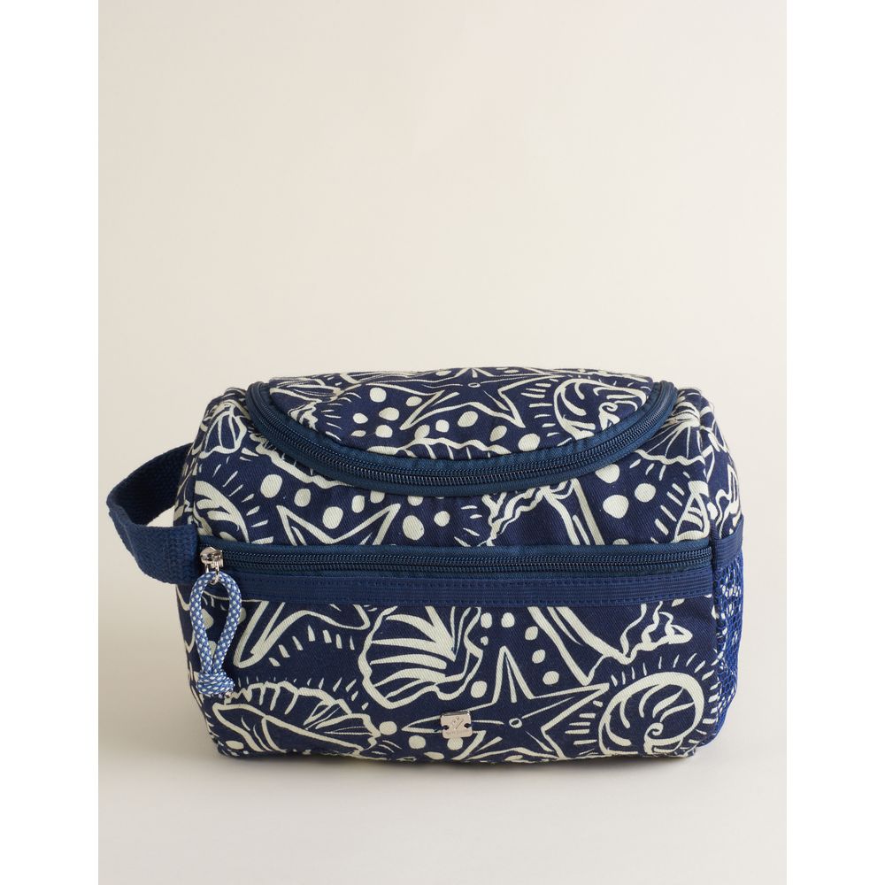 Necessaire em estampa MAR com bolsos frontais, laterais e interno em tela. Fechamento em zíper e alça lateral de mão. Medidas: 16cm (A) x 20cm (L) x 11cm (P)