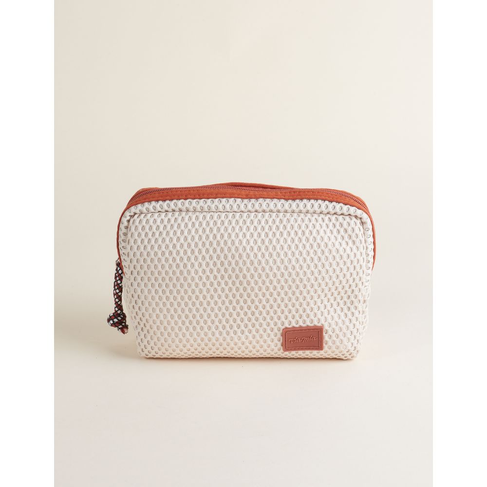 Necessaire retangular em tela esportiva, com fechamento em zíper e assinatura Via Mia em etiqueta emborrachada. Medidas: 13cm (A) x 18cm (L) x 5,5cm (P)
