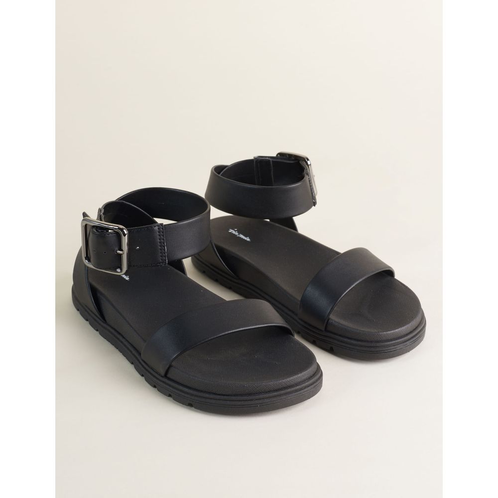 Com tiras largas e solado tratorado leve, essa papete em material soft aparece em versões lisas ou listrada. A fivela em prata velho completa o visual com personalidade.