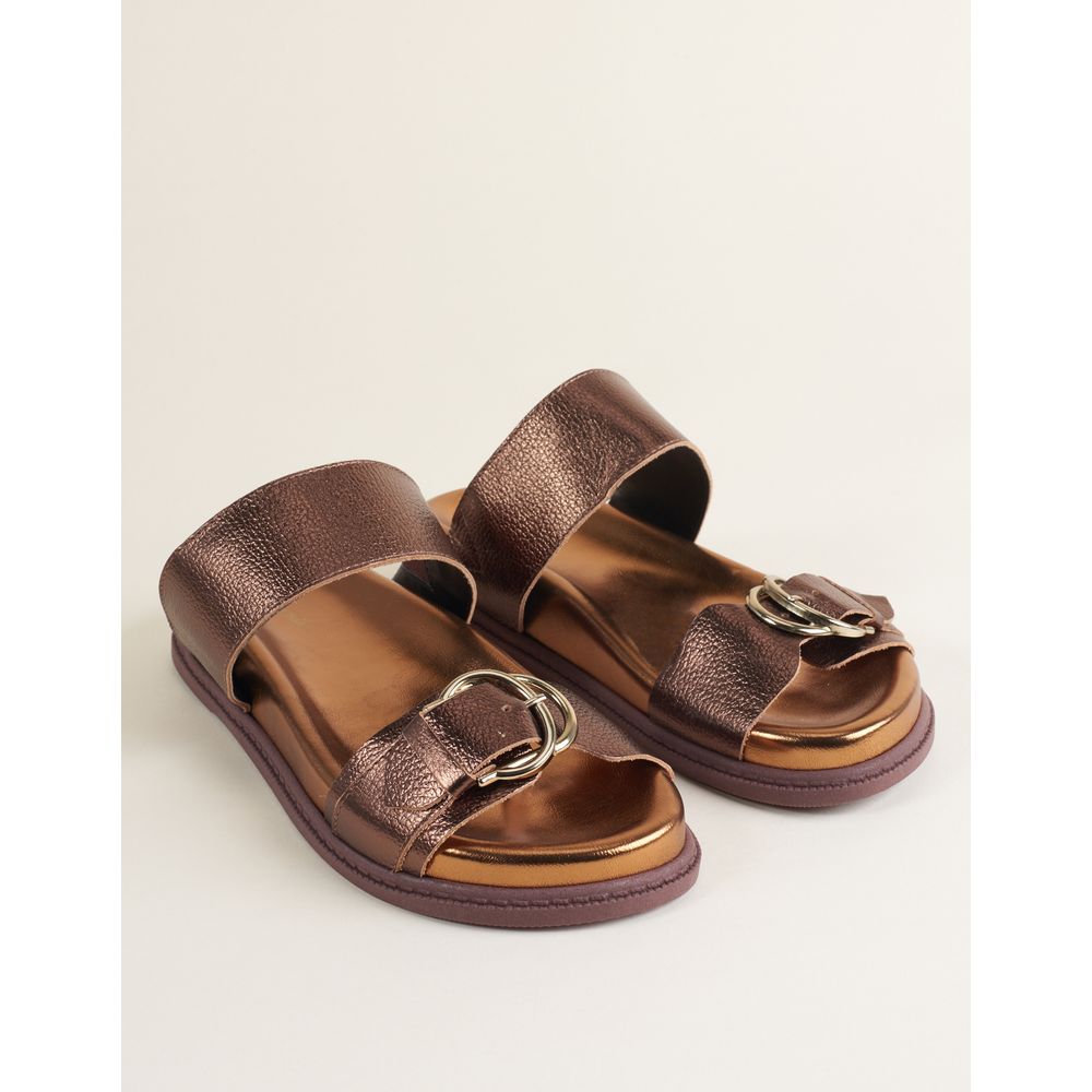 Papete Em Couro Metalizado Com Fivela E Velcro - Bronze