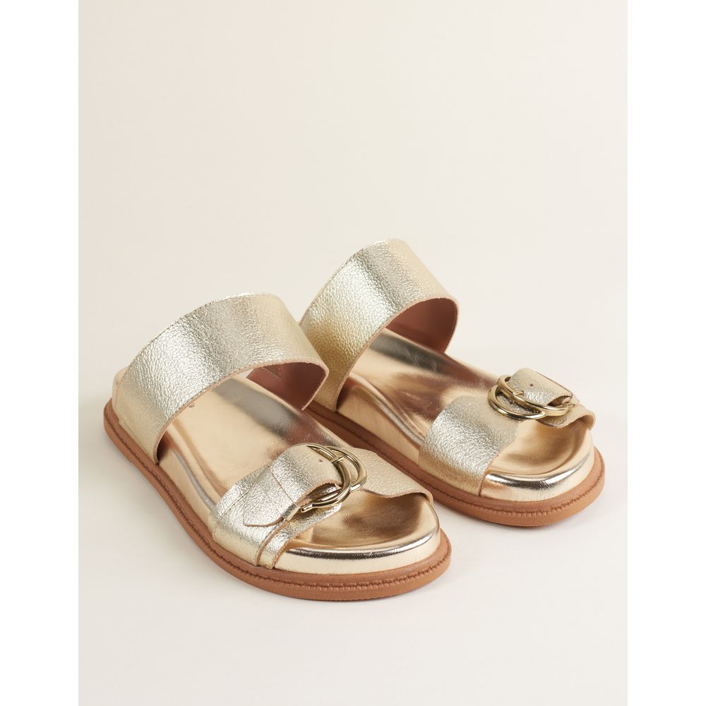 Papete com cabedal em couro floater metalizado, trazendo brilho na medida e um visual atual. O detalhe de fivela combinado ao velcro garante ajuste prático e seguro. Possui palmilha anatômica em soft metalizado, proporcionando mais conforto no uso.