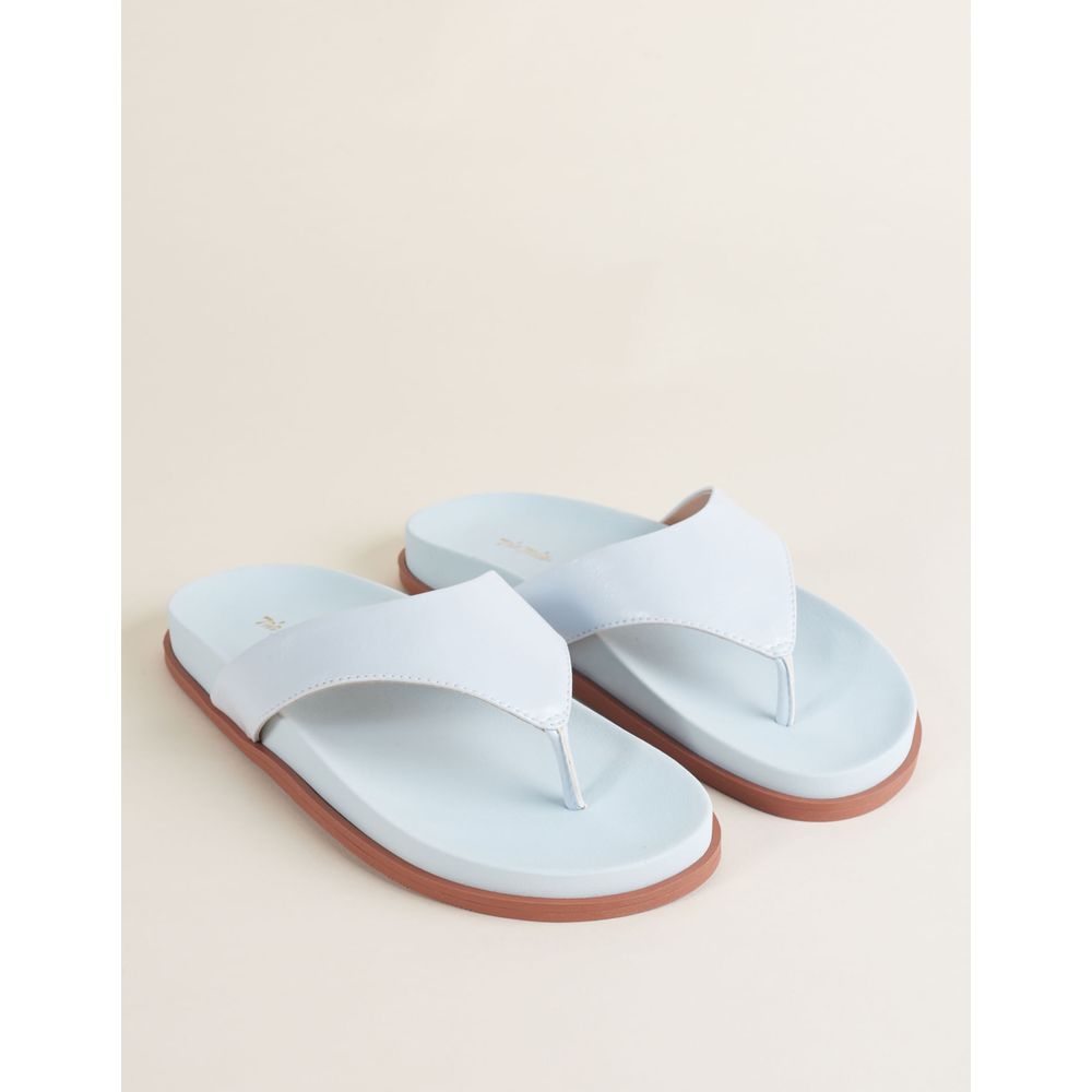 Papete estilo chinelão com tiras largas em material soft com efeito encerado. Palmilha pintada no mesmo tom do cabedal e solado emborrachado. Confortável e moderna.