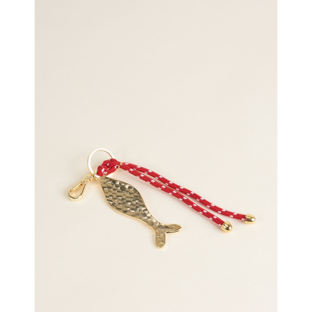 penduricalho pra usar como chaveiro, na bolsa ou como preferir! em formato de peixe com acabamento martelado, cadarço bicolor.