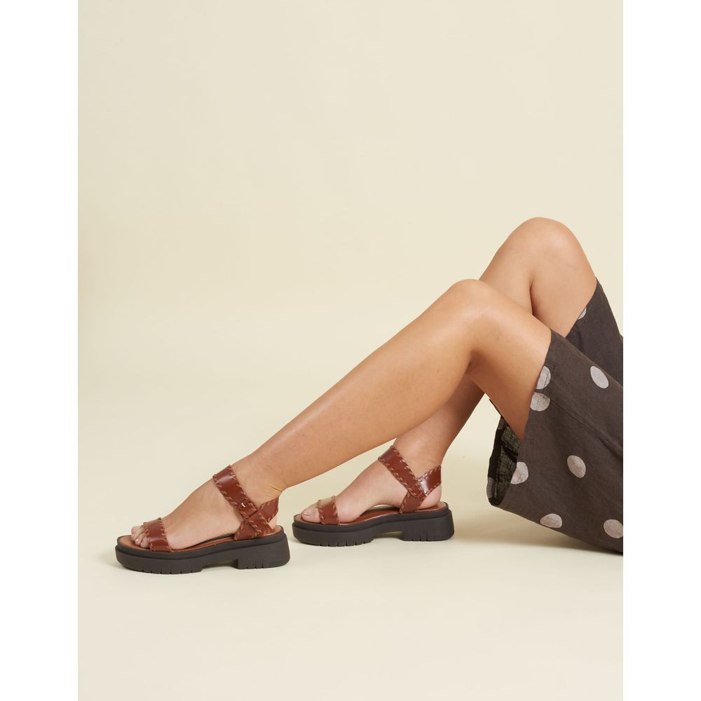 RasteiraSandália sem salto ou com salto de até 1cm. O cabedal do modelo pode ser básico ou mais elaborado.