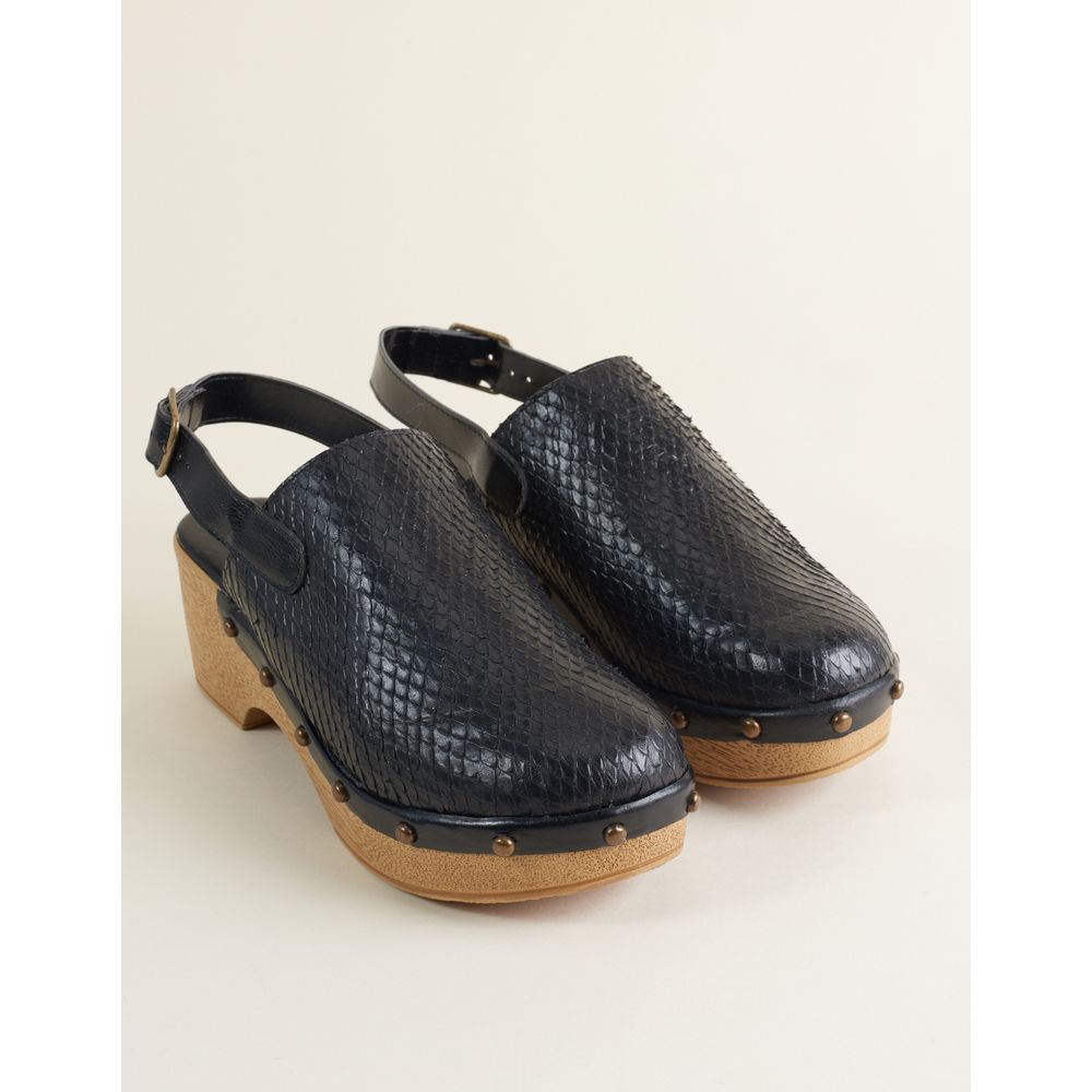 Plataforma Em Couro Serpente Com Metais - Preto