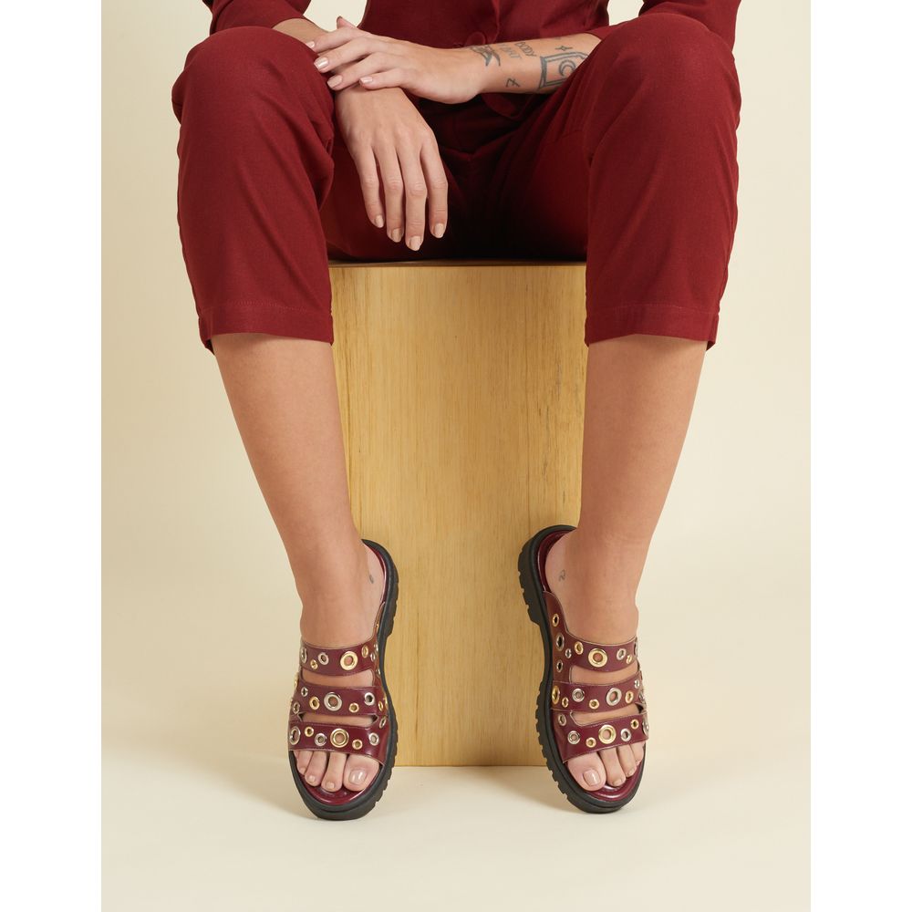 Plataforma com tiras Largas e ilhoses metálicos. Solado tratorado e toque moderno pra sua produção.