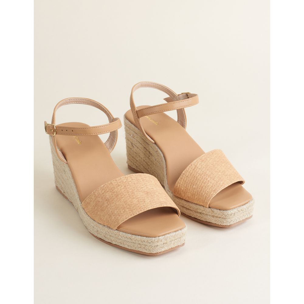 Plataforma com textura de ráfia e fechamento em material soft com fivela. Salto forrado em corda natural. Com mood natural, eleva qualquer look com leveza. Medidas: salto 8cm.