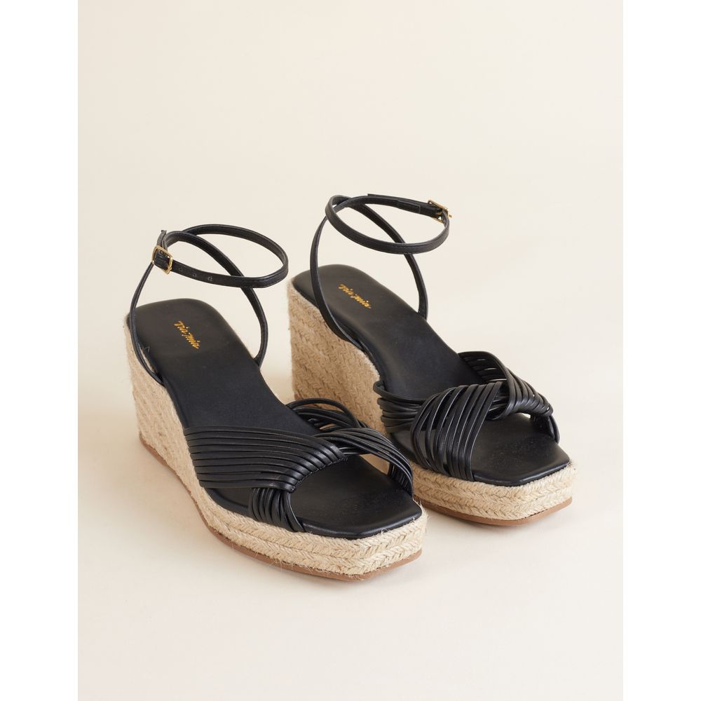 conforto e estilo se encontram nessa plataforma com tiras finas e nó central. o cabedal e a palmilha em material soft, alternativo ao couro, o solado natural e o salto forrado em corda natural garantem um visual leve e despojado, perfeita para dias de sol.