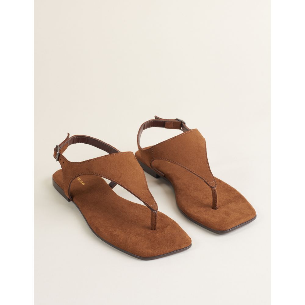 Rasteira com cabedal estilo asa delta e tira de dedo em camurça soft, trazendo um visual moderno e leve. Possui fechamento por fivela para melhor ajuste. A palmilha com frente quadrada, também em camurça soft, completa o modelo com conforto e um toque atual.