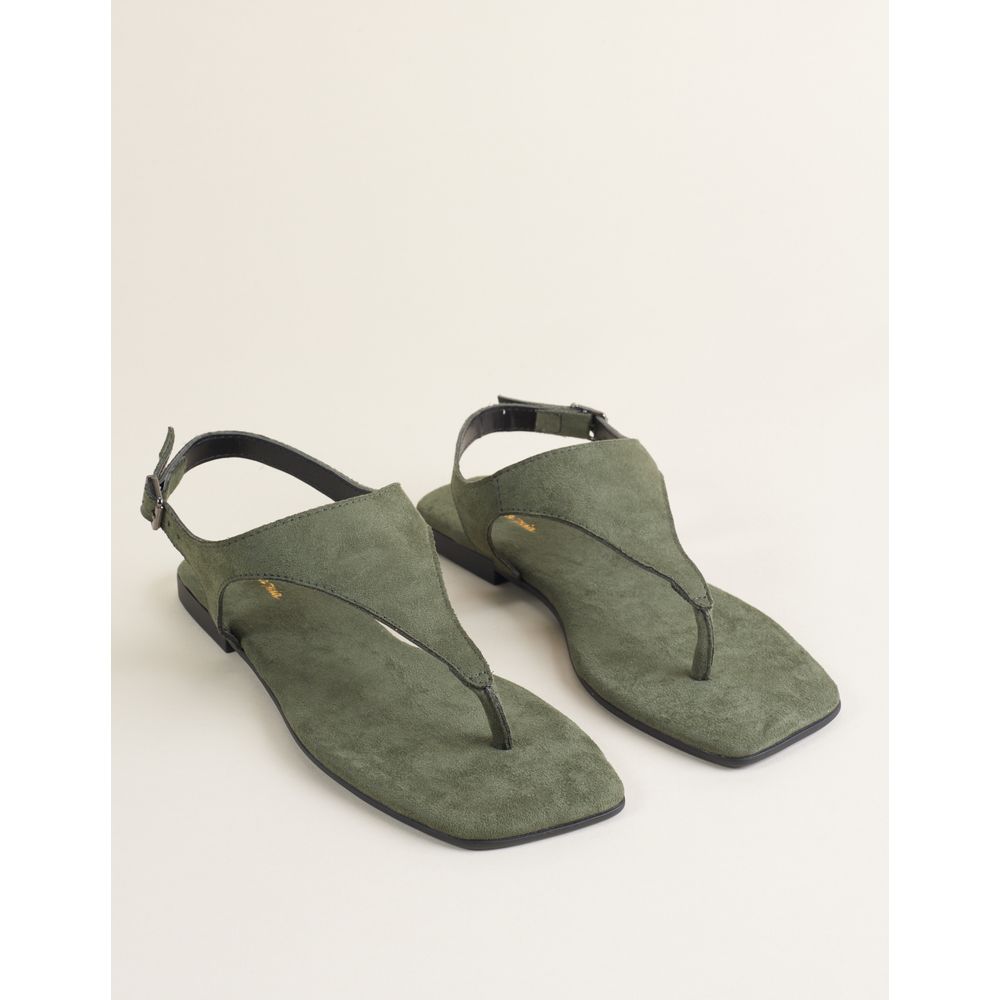Rasteira com cabedal estilo asa delta e tira de dedo em camurça soft, trazendo um visual moderno e leve. Possui fechamento por fivela para melhor ajuste. A palmilha com frente quadrada, também em camurça soft, completa o modelo com conforto e um toque atual.
