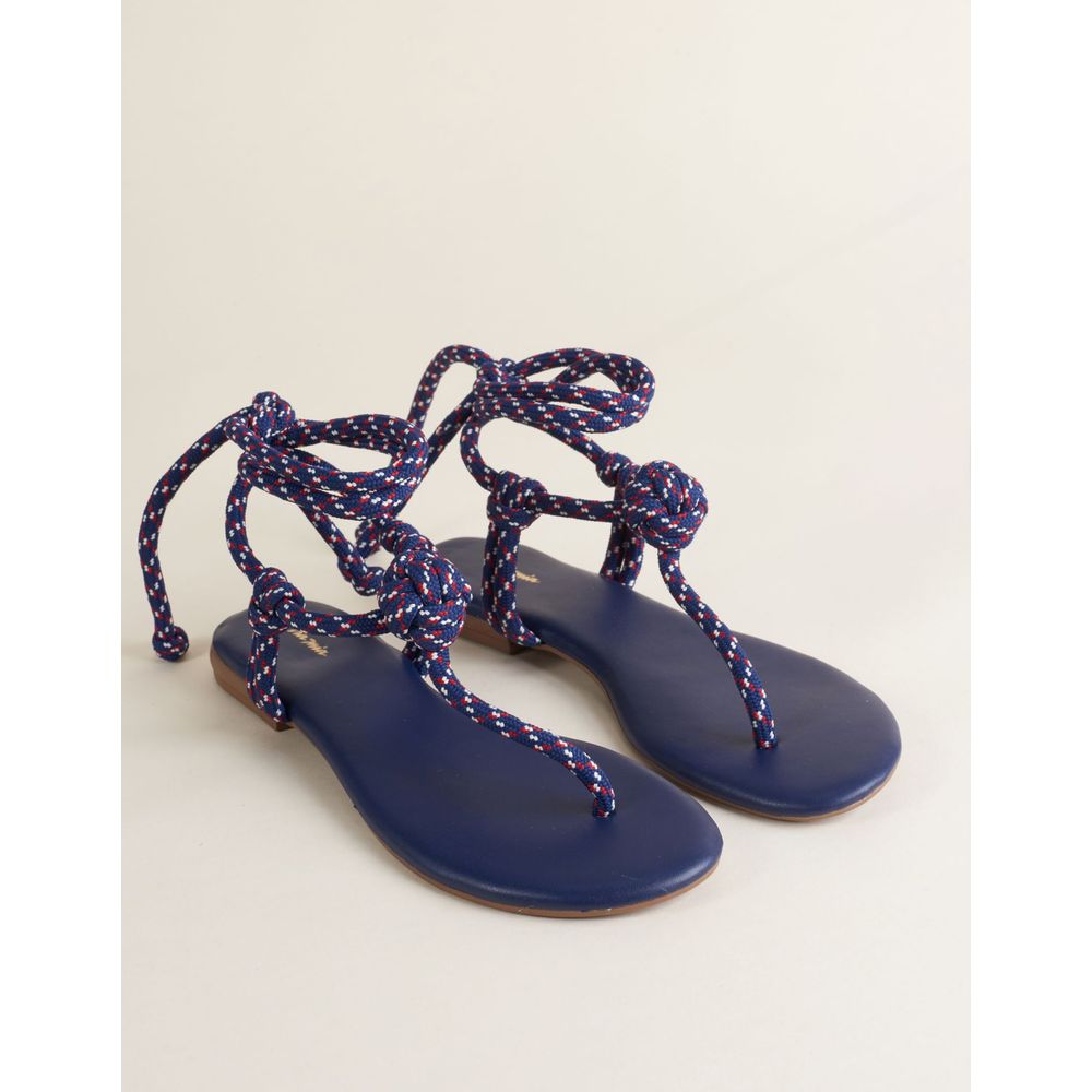 Rasteira de dedinho com cabedal em cadarço e detalhe de nó no peito do pé. Palmilha acolchoada. Estilosa e descomplicada, dá um toque casual ao look.