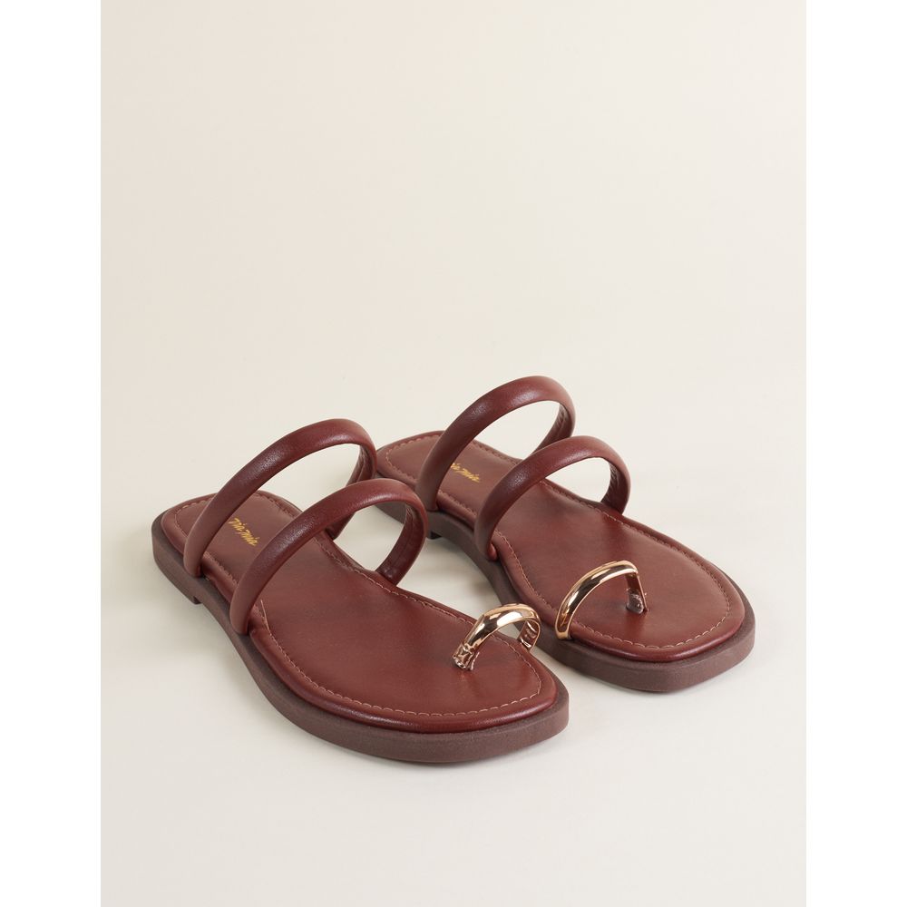 Rasteira Com Tiras Com Dedinho Metalizado - Cafe