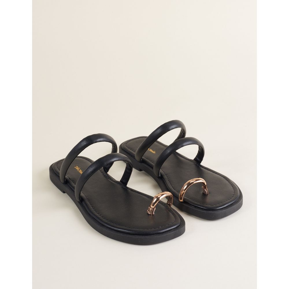 Rasteira Com Tiras Com Dedinho Metalizado - Preto