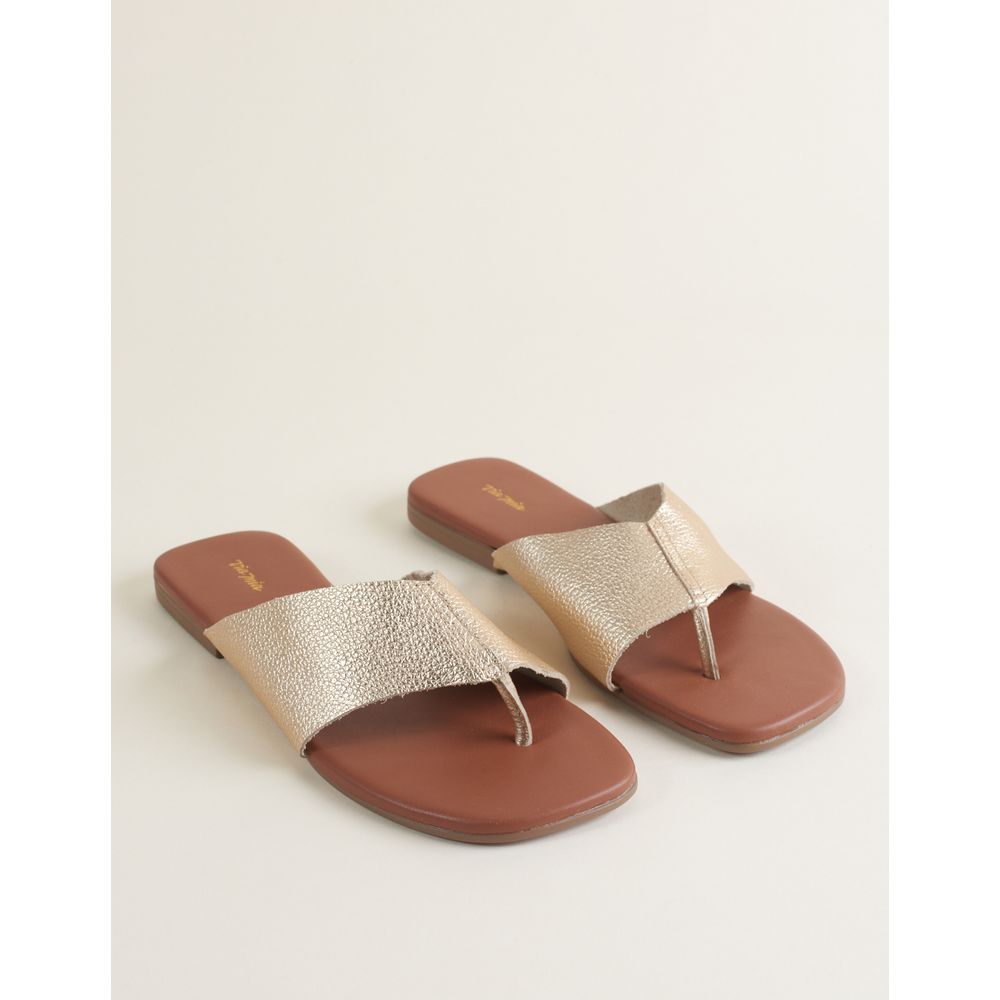 Rasteira Couro Tiras Largas - Ouro Light