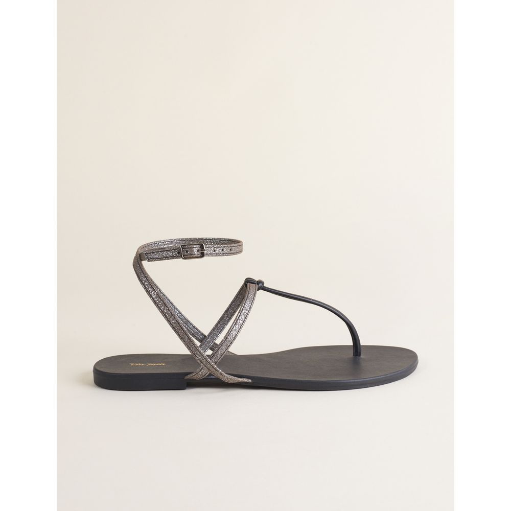 Rasteira Tiras Finas Metalizadas - Prata Velho
