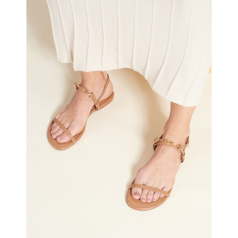 Rasteira com tiras em material soft e detalhe de bambu em metal. Fechamento com fivela. Um modelo leve com visual delicado e atual, ideal pra quem curte acessorios com toque diferente.
