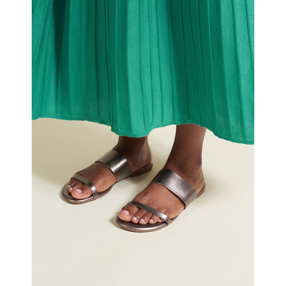 Com visual minimalista e moderno, essa rasteira tem duas tiras em material soft metalizado, sendo a de trás mais larga. Solado emborrachado completa o modelo.