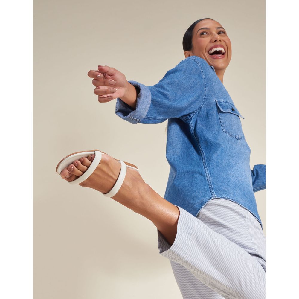 Rasteirinhas são tudo! Essa tem duas tiras meia cana, com solado natural, exceto na cor preta. É o tipo de rasteirinha que todo mundo deveria ter em casa. E talvez em mais de uma cor. : ) Você pode escolher entre camel, preta, jeans, off white e pink.
