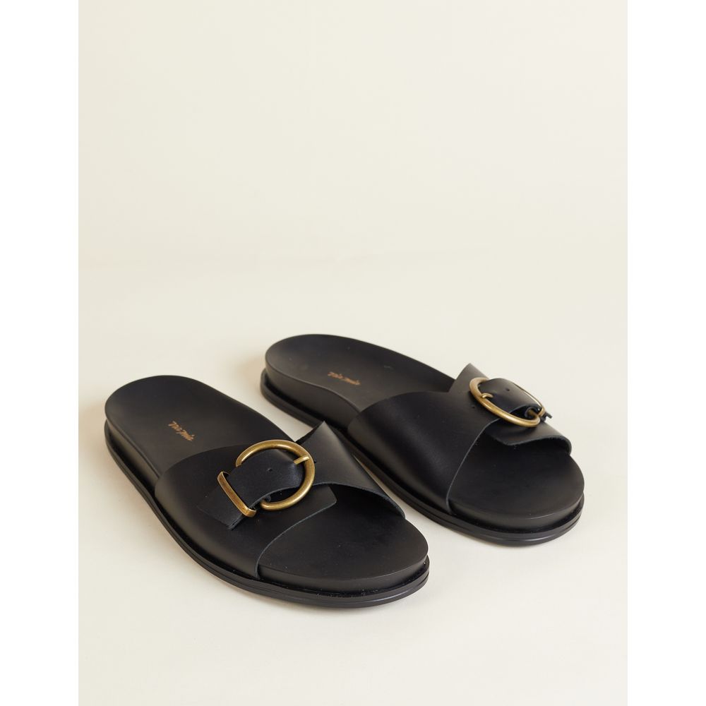 Rasteira tipo chinelão em couro liso, sem forro, com uma tira e detalhe de fivela. Palmilha anatômica no mesmo tom. Um básico repaginado cheio de estilo.