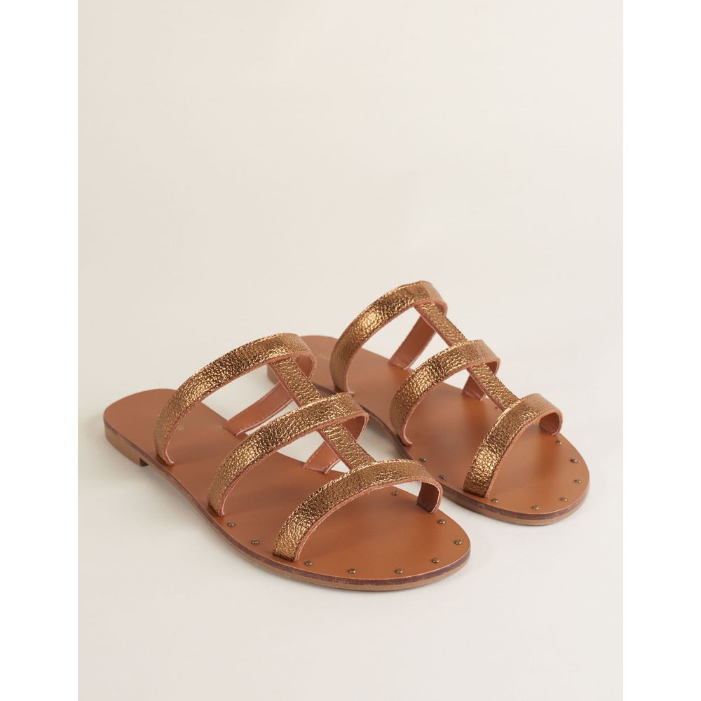 Rasteira Salomé Couro Metalizado - Bronze