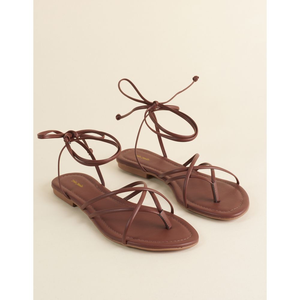 Rasteira Soft Com Tiras Cruzadas E Amarração - Cafe