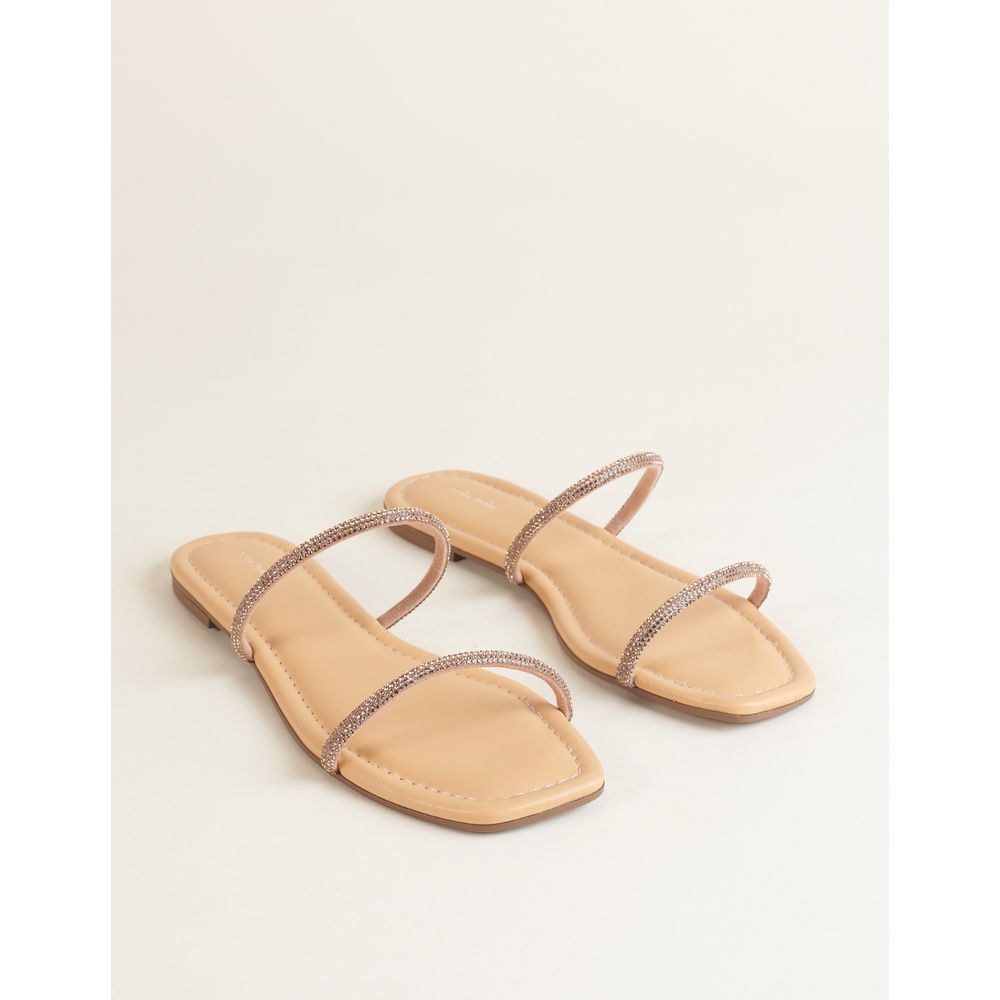 tem duas tiras com brilho no cabedal, perfeita pra dar aquele toque especial ao seu look. A palmilha é de material soft, alternativo ao couro, super confortável, com detalhes de pesponto na cor que adicionam um charme extra. Essa rasteira é ideal para arrasar em qualquer ocasião!