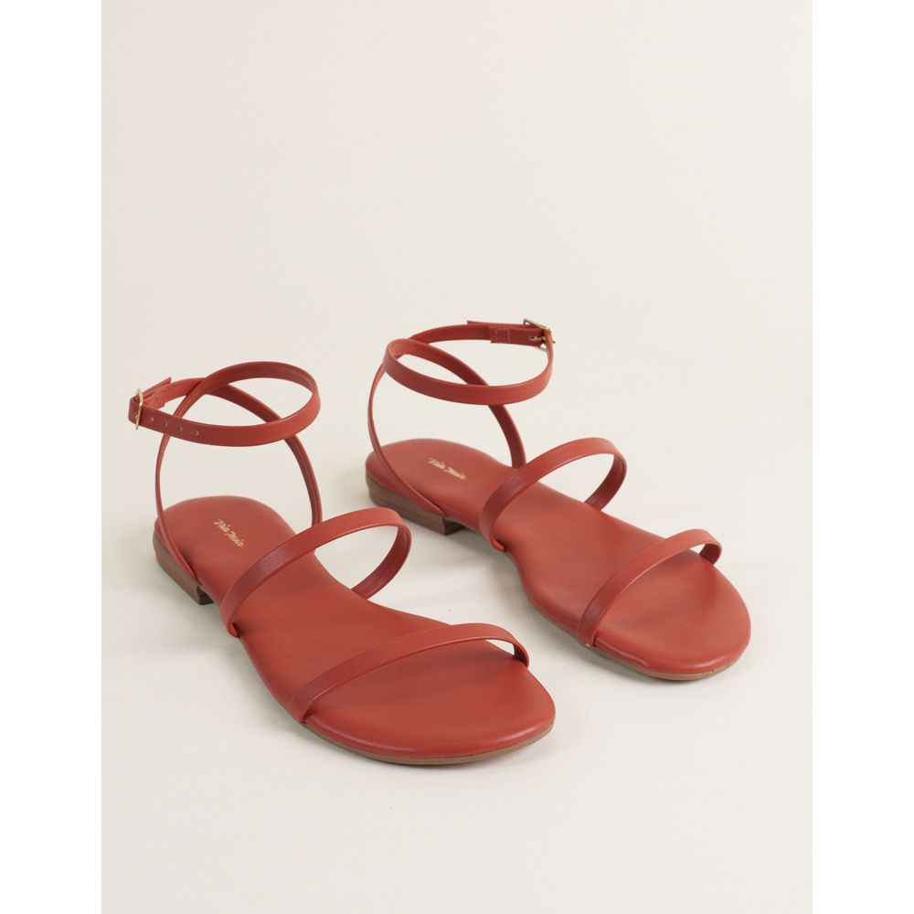 RasteiraSandália sem salto ou com salto de até 1cm. O cabedal do modelo pode ser básico ou mais elaborado.
