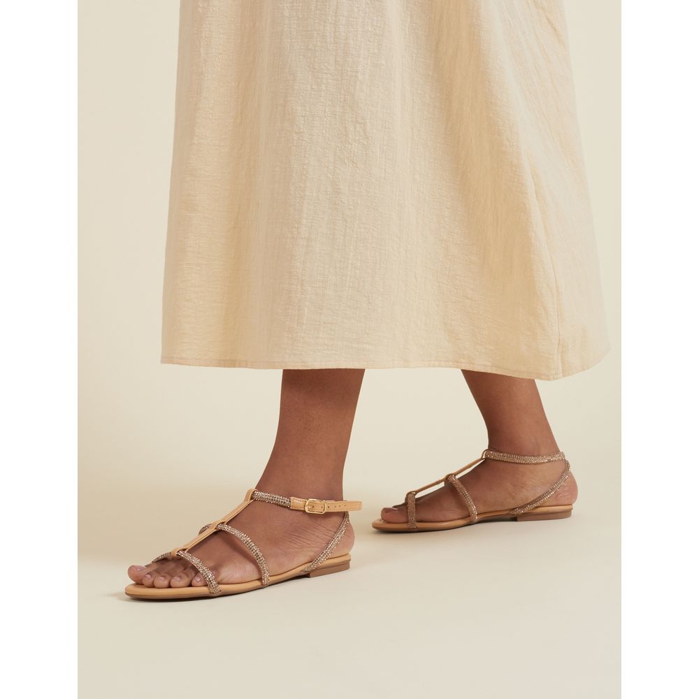 Para quem ama um toque de brilho, essa rasteira tem cabedal com tiras de material soft, alternativo ao couro, e aplicação de manta brilho. Fechamento em fivela e palmilha no mesmo material para completar o look glam.