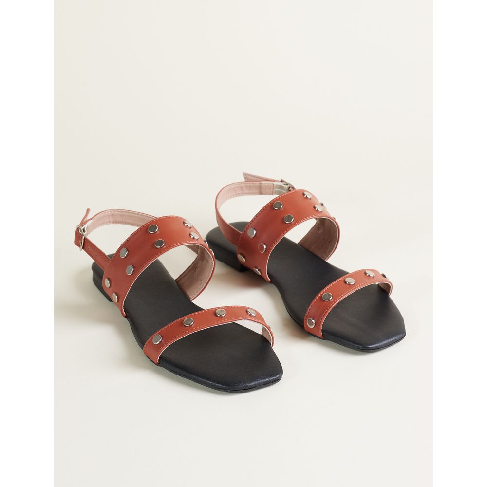 Cheia de atitude, essa rasteira tem cabedal de duas tiras largas em material soft, alternativo ao couro, com aplicação de rebites de metal. O fechamento traseiro com fivela de metal e a palmilha em tom contrastante são o destaque desse modelo moderno e estiloso.