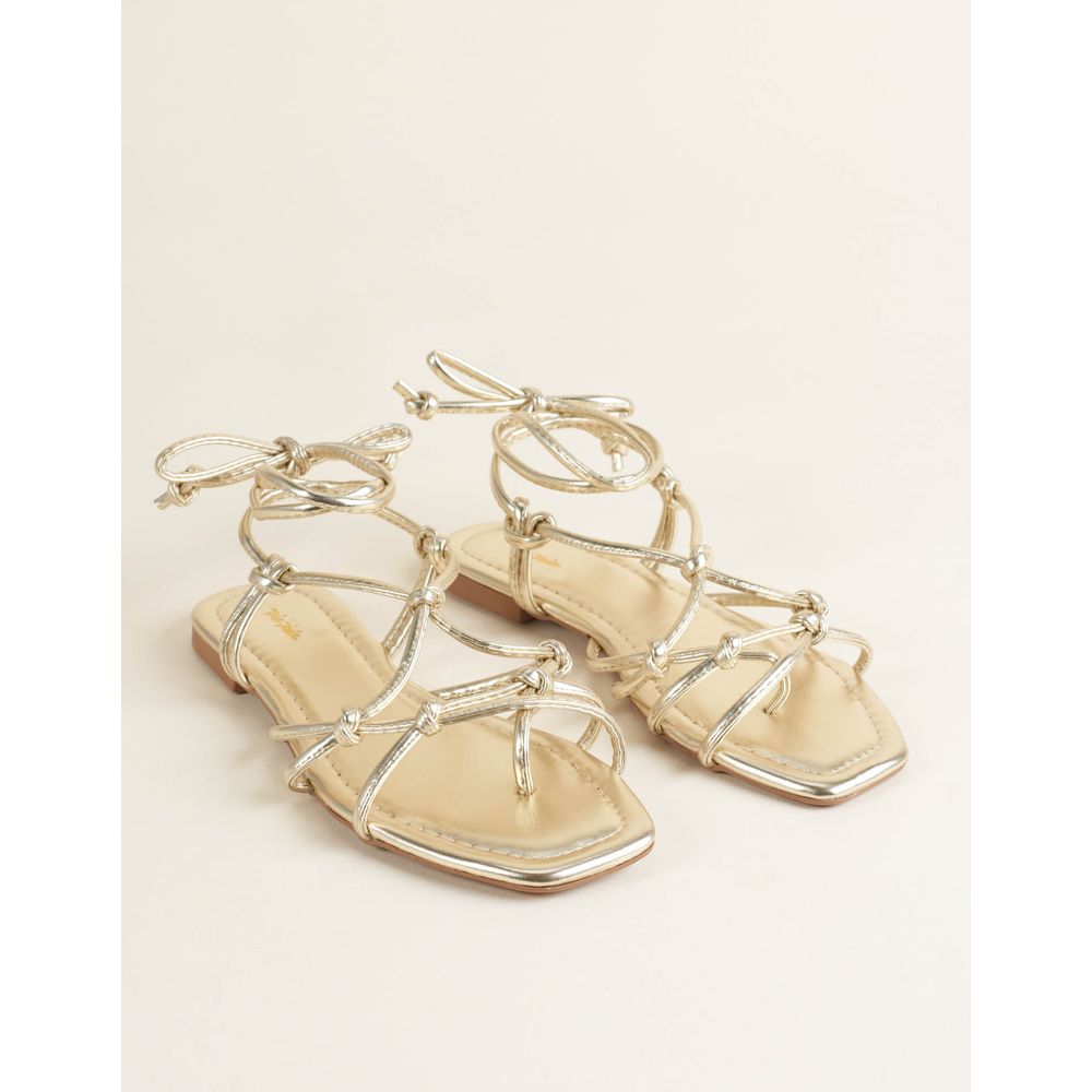Rasteira Soft Tiras Finas Amarração - Ouro Light