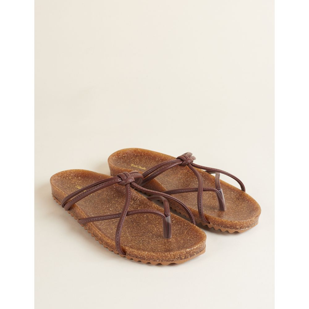 Rasteira Soft Tiras Finas Cortiça - Cafe