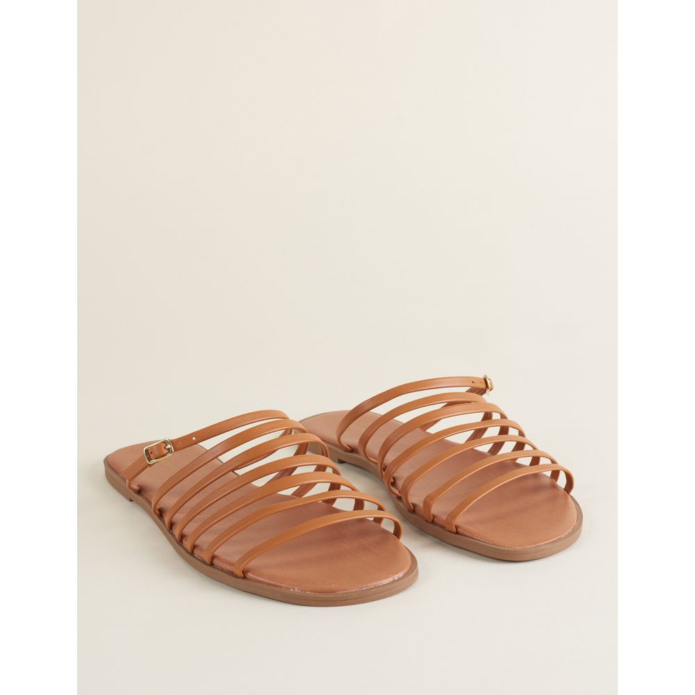 Rasteira Soft Tiras Finas E Fivela - Caramelo