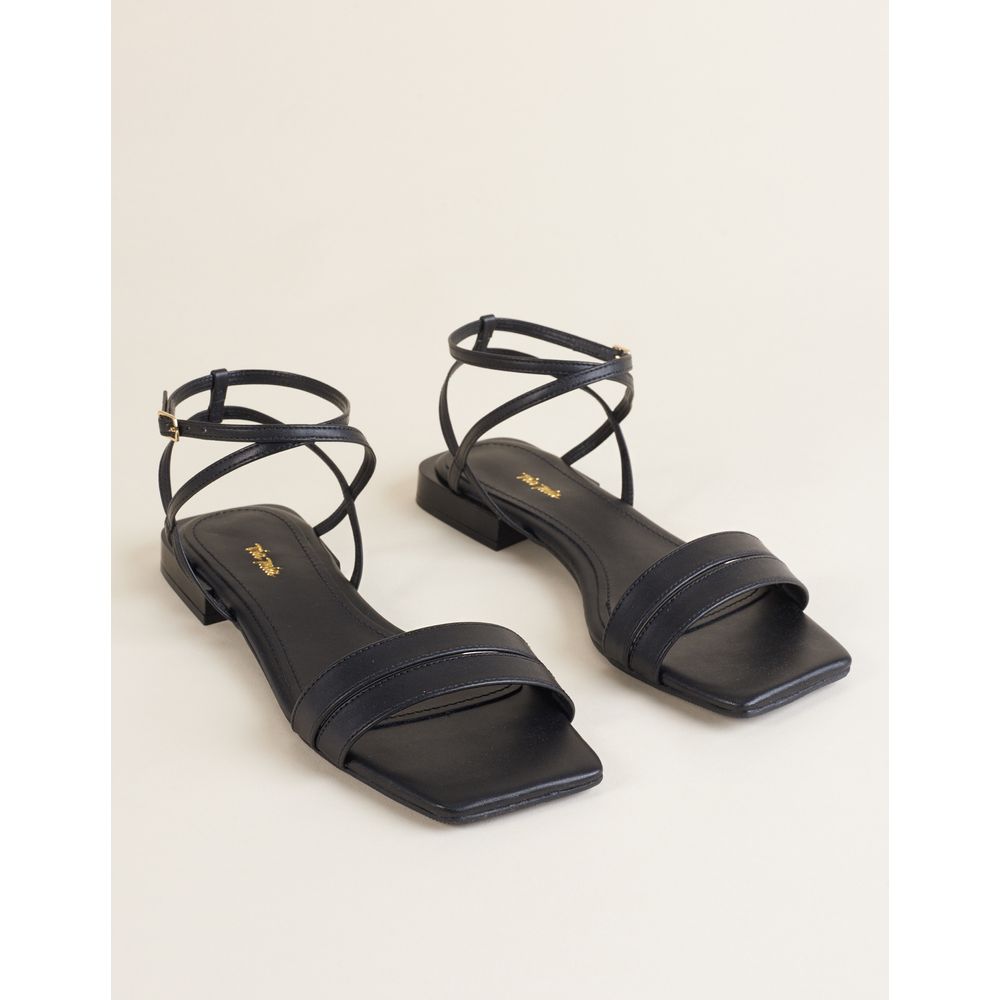 Rasteira Soft Tiras Gaspeas Salto De Madeira - Preto