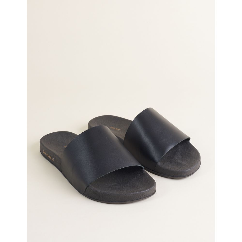Rasteira Tipo Papete De Couro - Preto