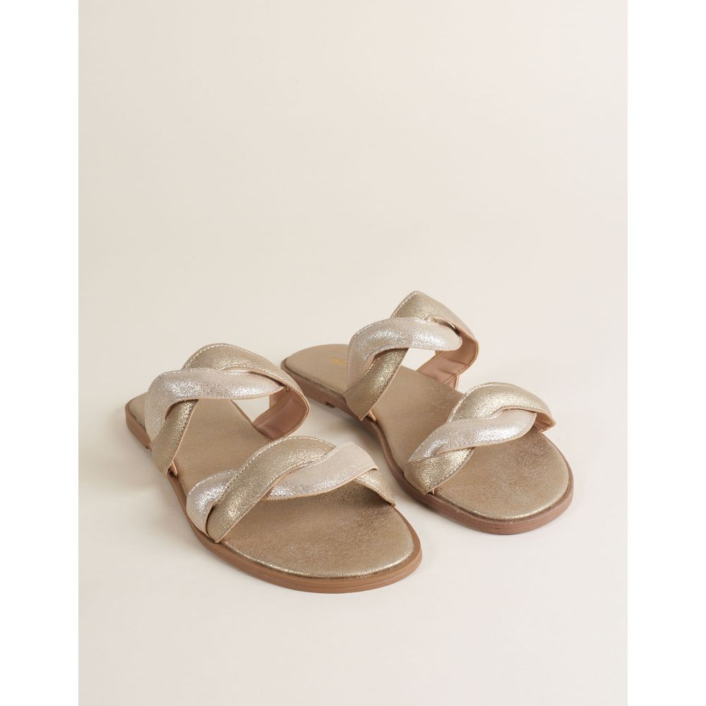 Rasteira Tiras Cruzadas Metalizada - Ouro Light