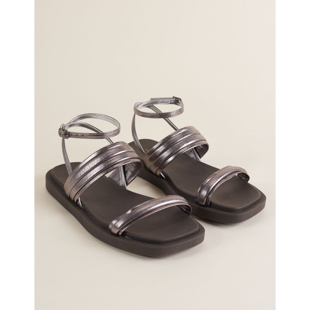 Rasteira Tiras Metalizada - Prata Velho