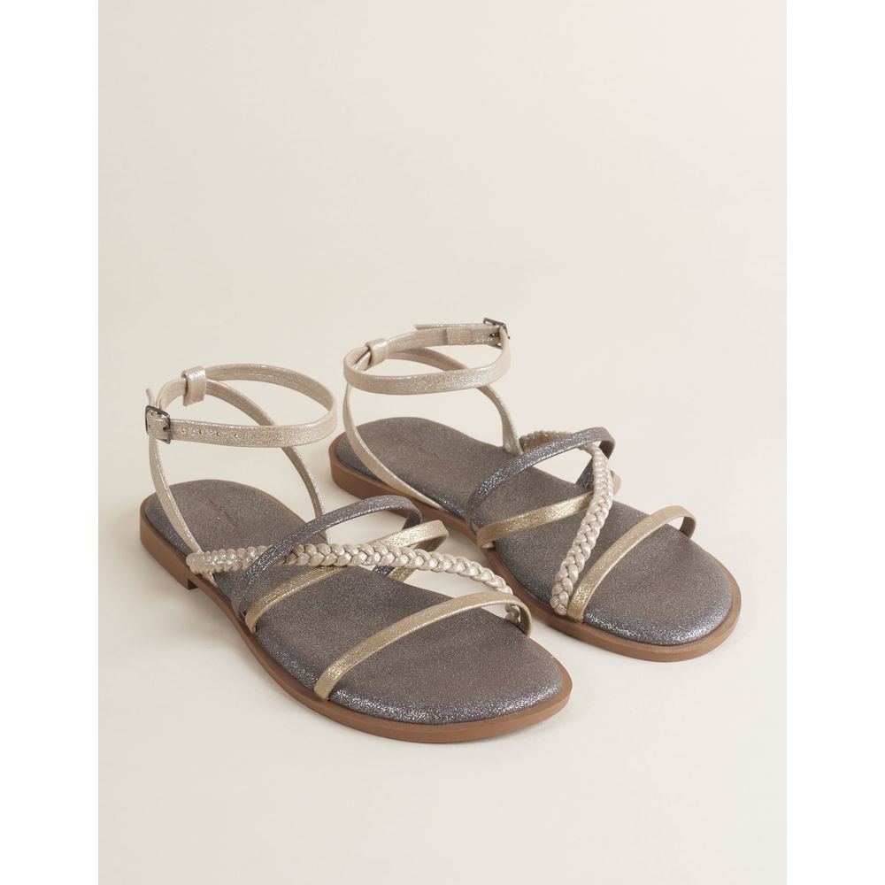 Rasteira Tiras Trançadas Metalizadas - Unica