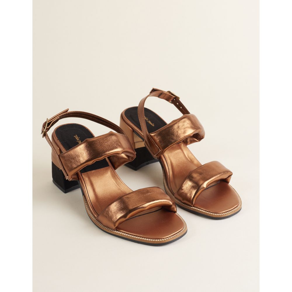 Sandália Alta Duas Tiras Soft Com Fivela - Bronze