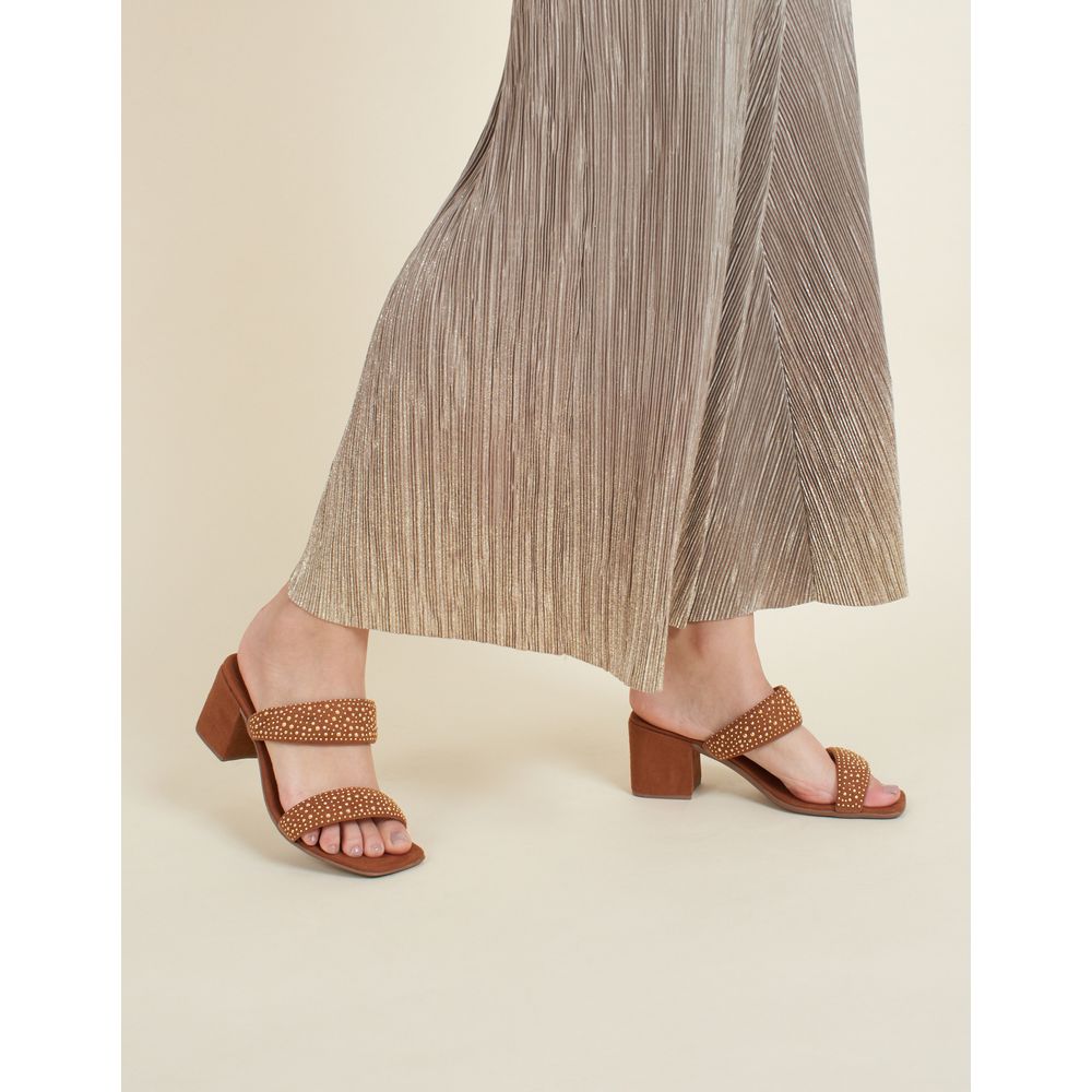 Sandália de Salto Média Aplicacões Termocolantes Matalizadas - Caramelo