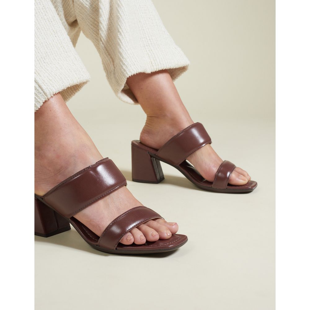 Sandália Duas Tiras Soft Salto Médio - Cafe